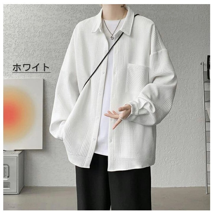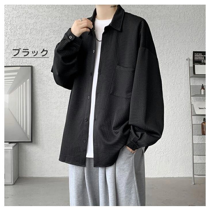 カジュアルシャツ ゆったり メンズ 4色 M-5XL 無地 オーバーサイズ 長袖シャツ おしゃれ 25LT163
