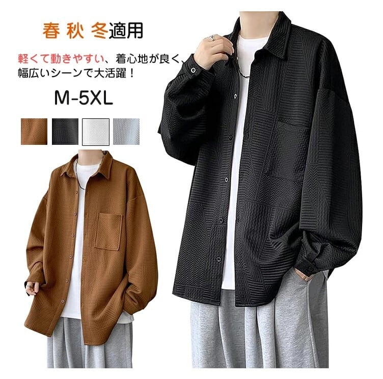 ■商品:カジュアルシャツ ゆったり メンズ 4色 M-5XL 無地 オーバーサイズ 長袖シャツ おしゃれ 韓国 ファッション コーデ おすすめ カジュアル きれいめ 大きいサイズ 人気 ゆったり 20代 30代 40代 50代