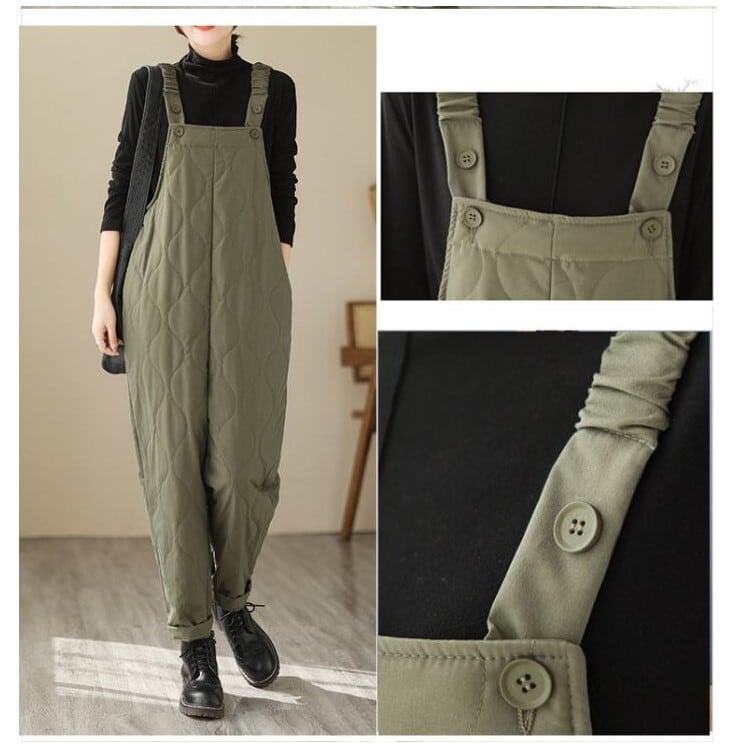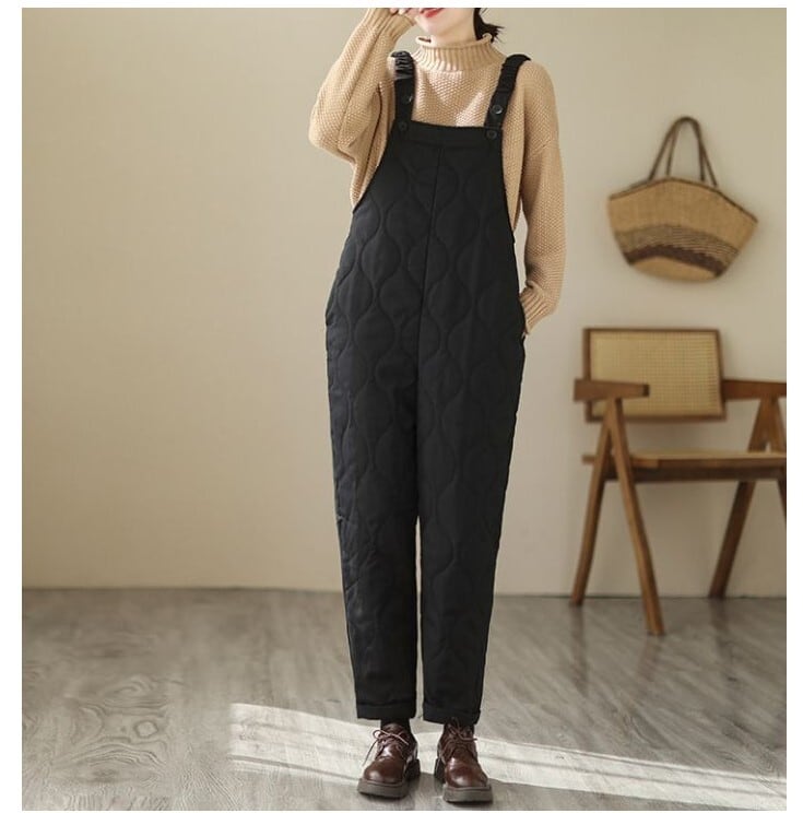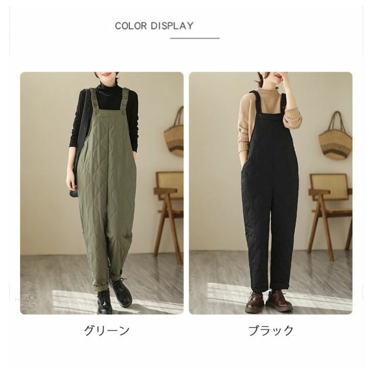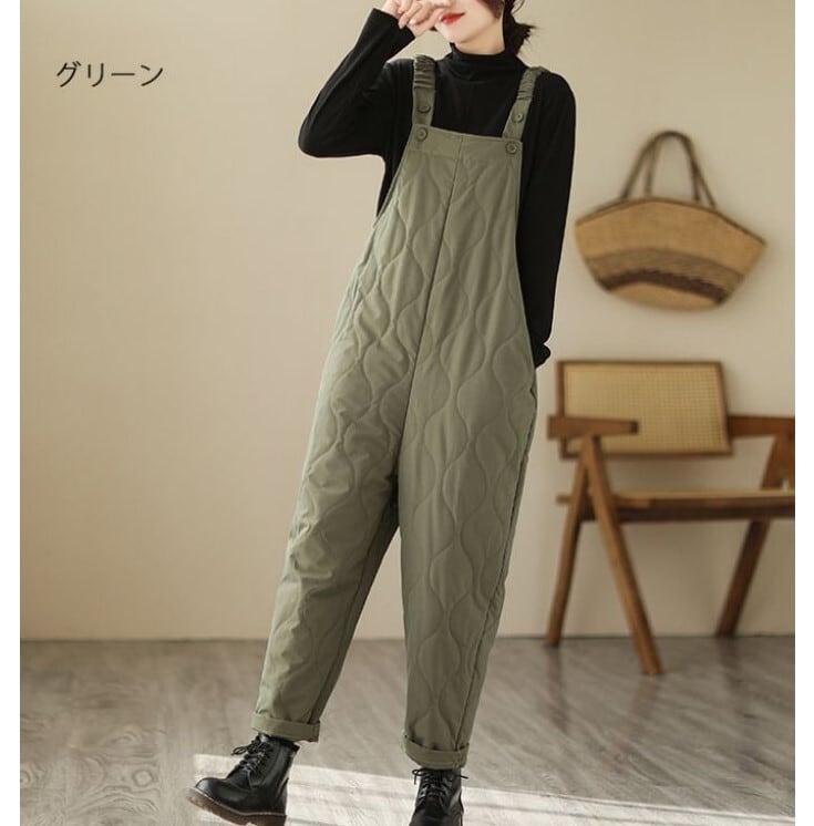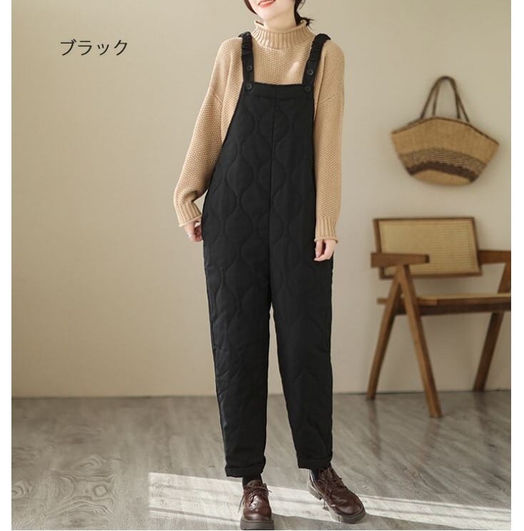 ■商品:サロペット 中綿入り オールインワン レディース 2色 M-2XL 無地 オーバーオール カジュアル おしゃれ 韓国 ファッション コーデ おすすめ カジュアル きれいめ 大きいサイズ 人気 ゆったり 20代 30代 40代 50代