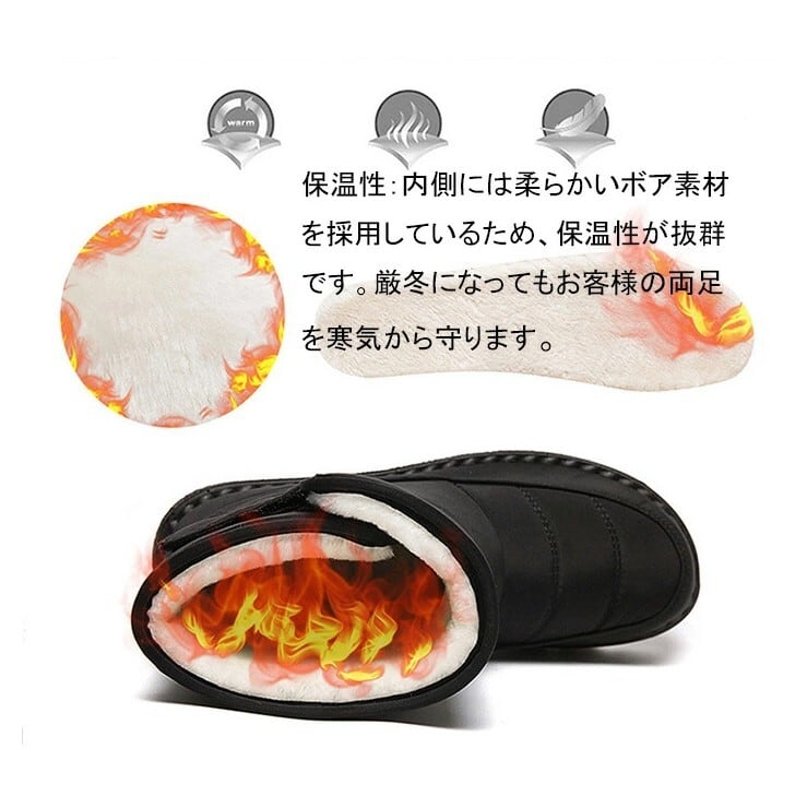 『このスノーブーツは、冬の厳しい寒さと雪からあなたの足をしっかり守ります。』
