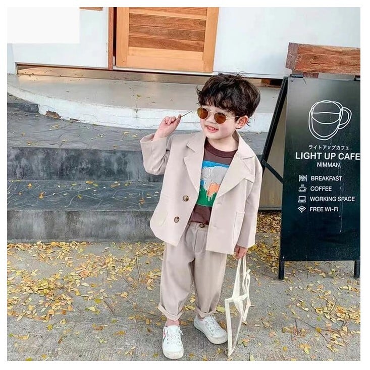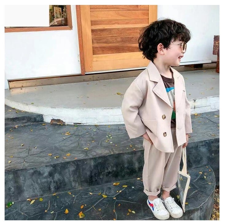 『このキッズスーツは、上品でありながらも動きやすいデザインです。』