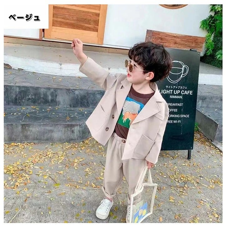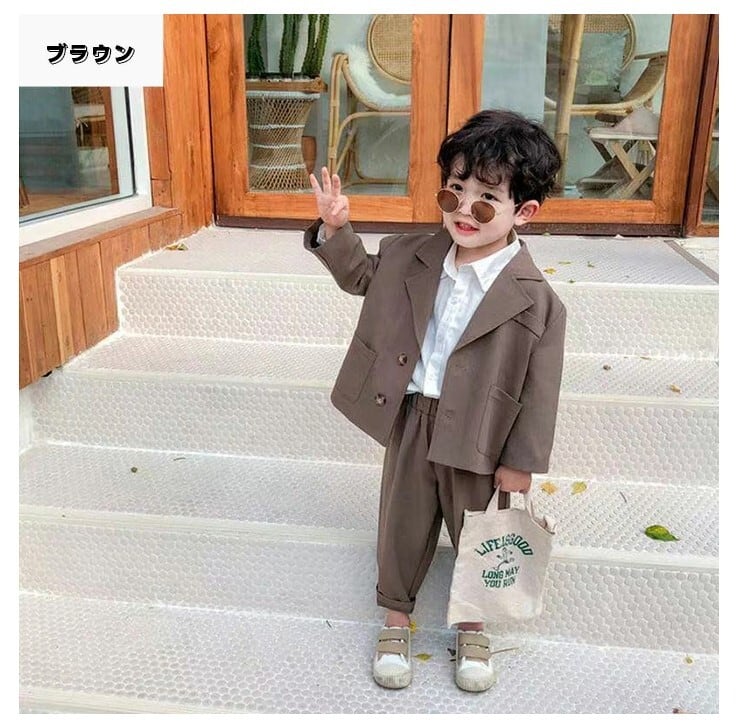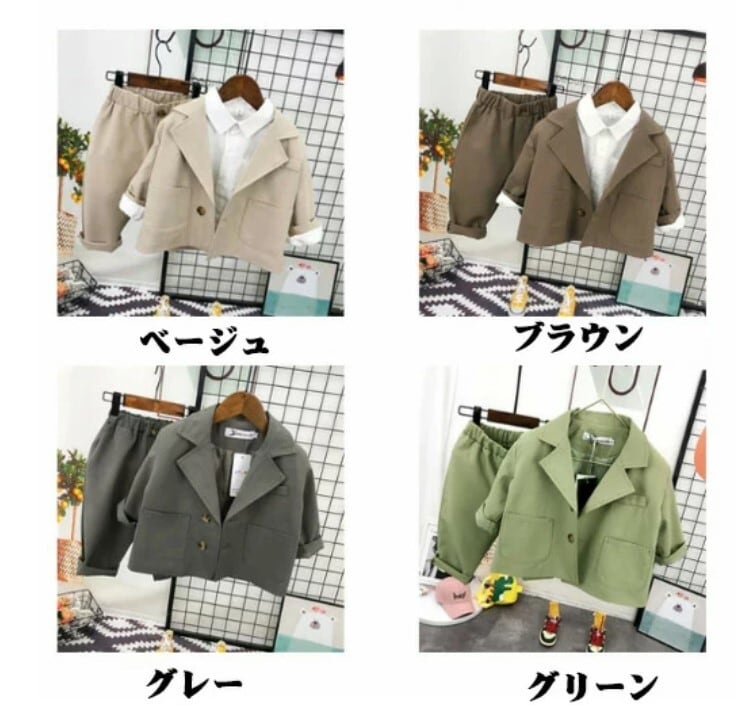 90㎝から130㎝までのサイズ展開で、成長に合わせてぴったりの一着を選べます。さらに、4色のバリエーションからお子様の好みに合わせたカラーをお選びいただけます。セットアップのスタイルは、入園式や卒園式などのフォーマルなシーンで一際目を引く存在になること間違いなしです!しっかりとした素材で作られており、これからの季節のイベントにも安心して着られる一枚です。