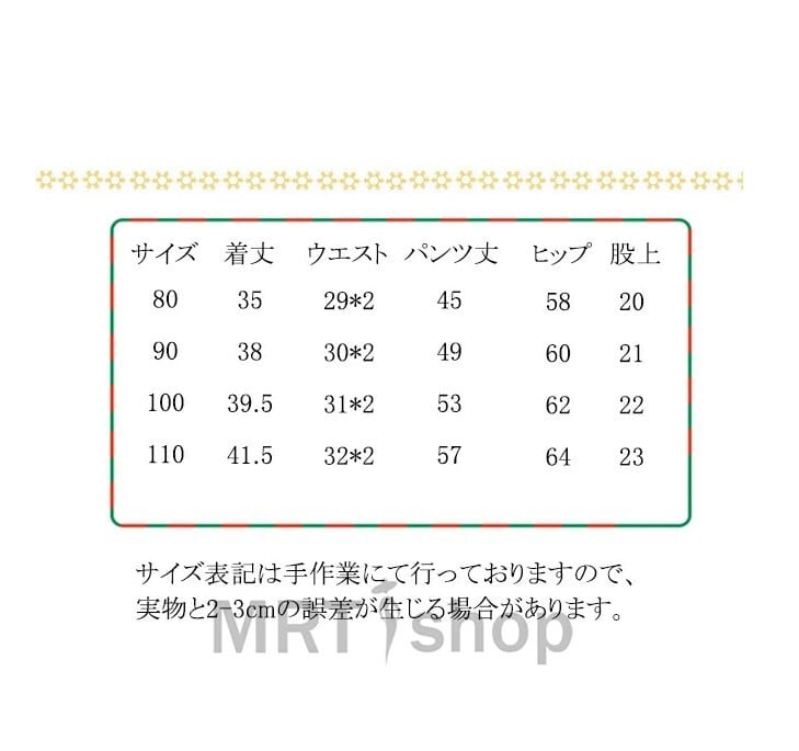 サイズ表の実寸法は商品によって1-3cm程度の誤差がある場合がございます。