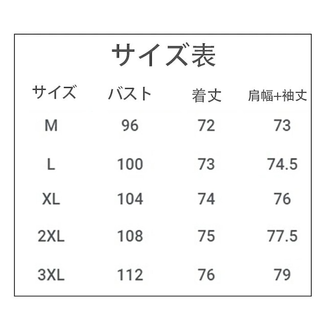 ★サイズ:M/L/XL/2XL/3XL (画像参照)