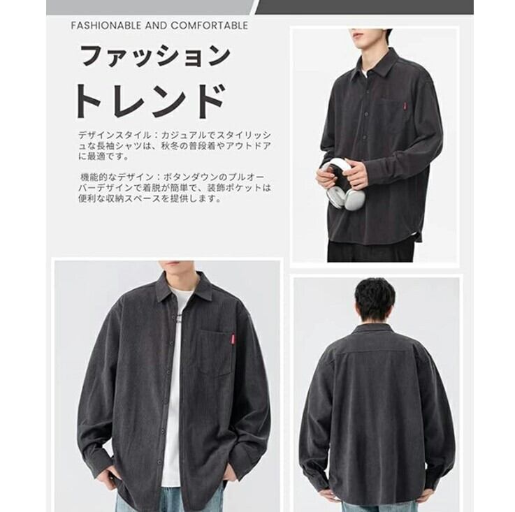 ■商品:シャツ 長袖 コーデュロイシャツ メンズ 6色 M-4XL カジュアルシャツ 大人 無地 おしゃれ 春秋 韓国 ファッション コーデ おすすめ カジュアル きれいめ 大きいサイズ 人気 ゆったり 20代 30代 40代 50代