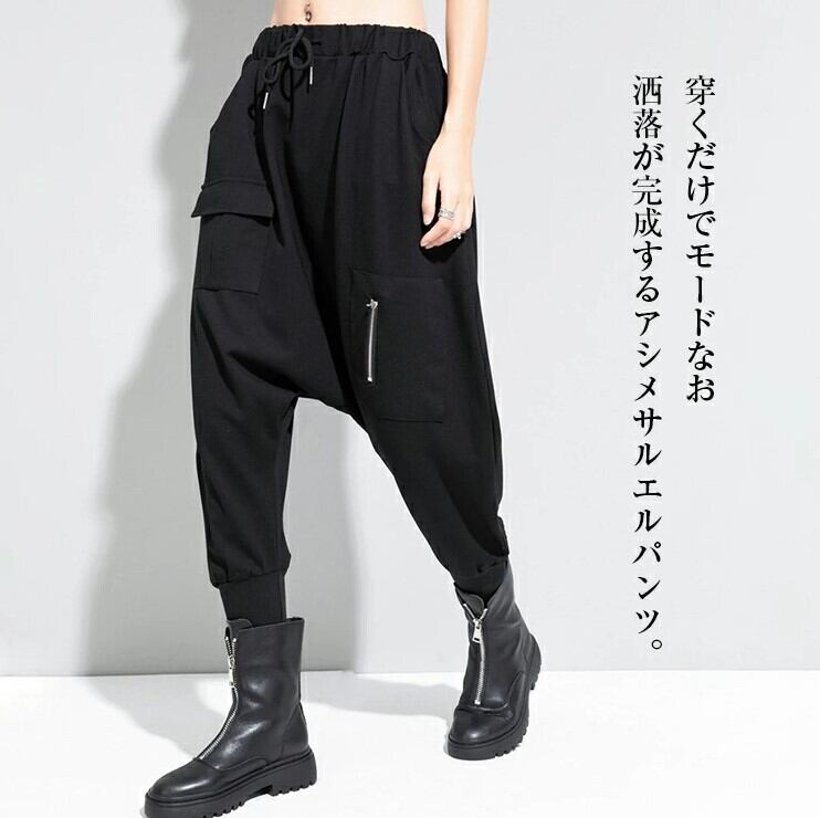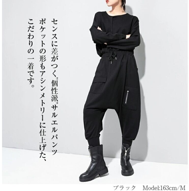 サルエルパンツ ジョガーパンツ 七分丈 レディース 黒 M-L ウエストゴム モード系 個性的 25LT198