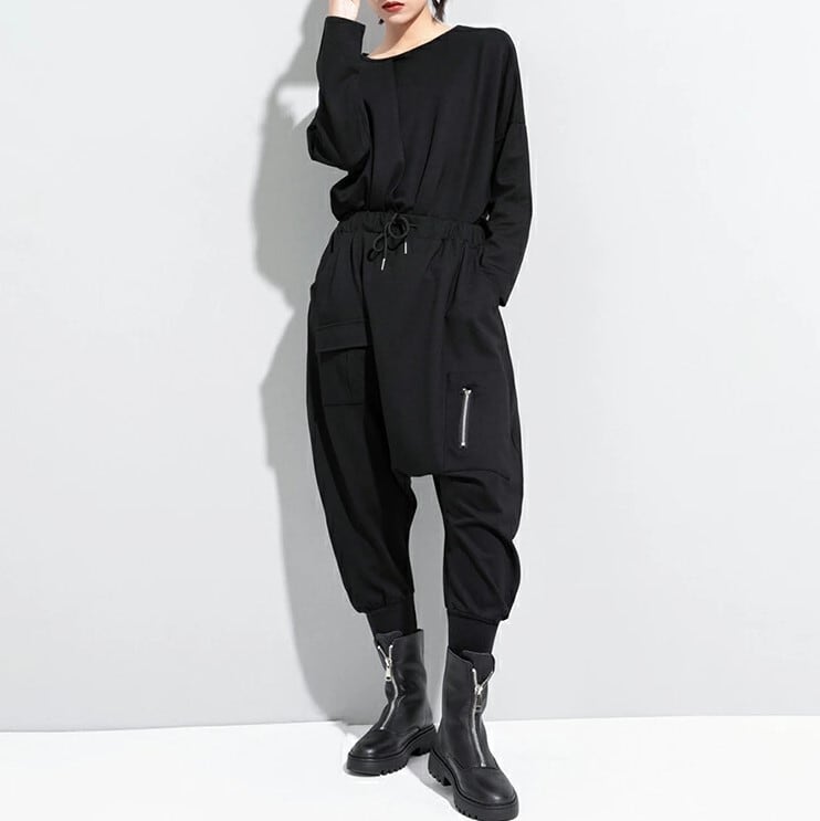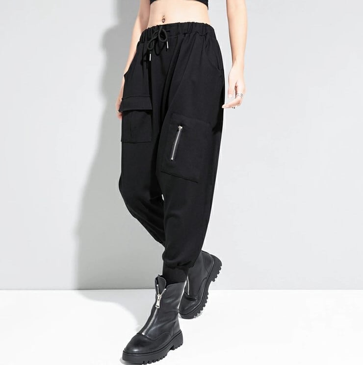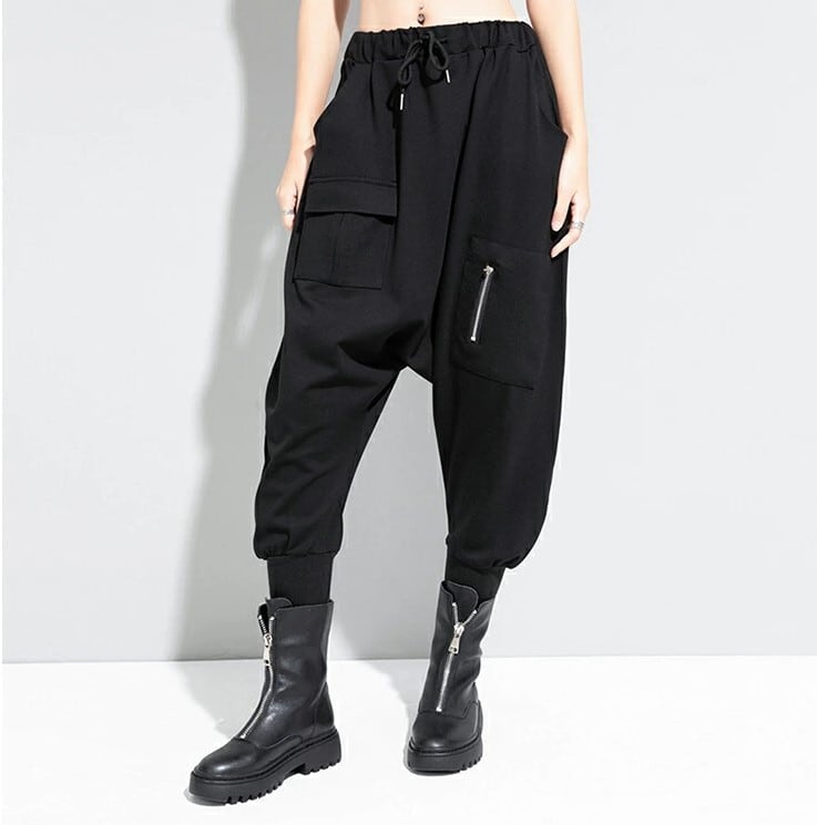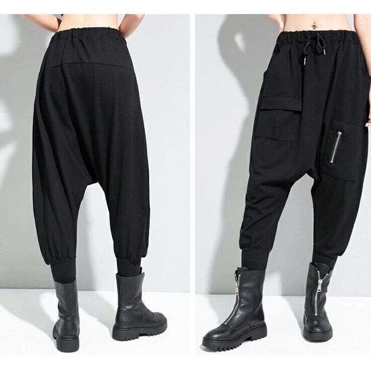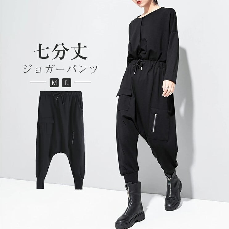 ■商品:サルエルパンツ ジョガーパンツ 七分丈 レディース 黒 M-L ウエストゴム モード系 個性的 韓国 ファッション コーデ おすすめ カジュアル きれいめ 大きいサイズ 人気 ゆったり 20代 30代 40代 50代