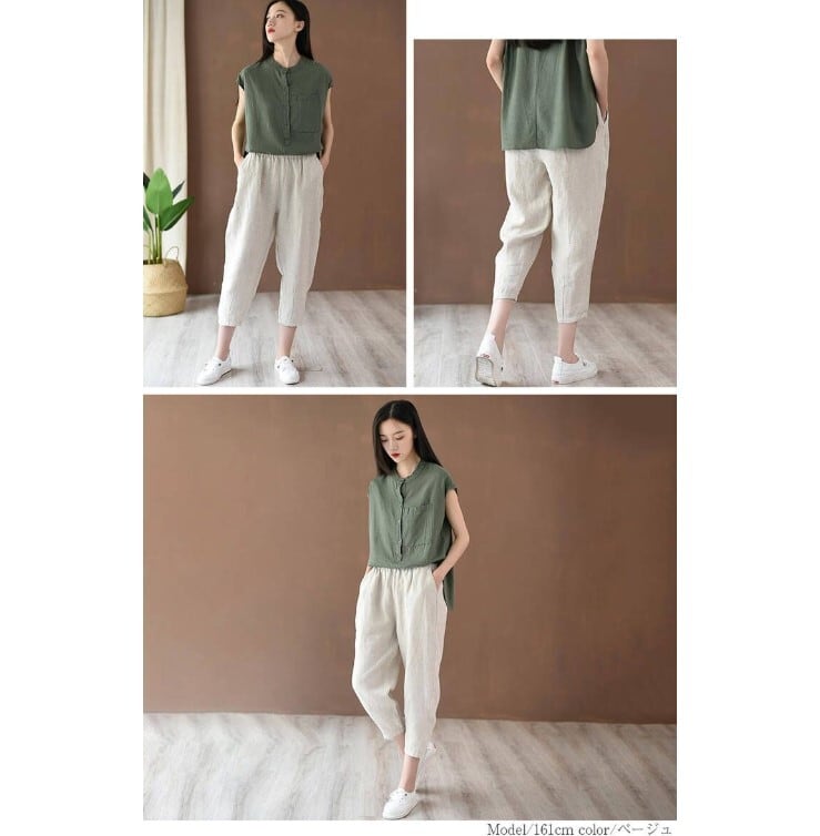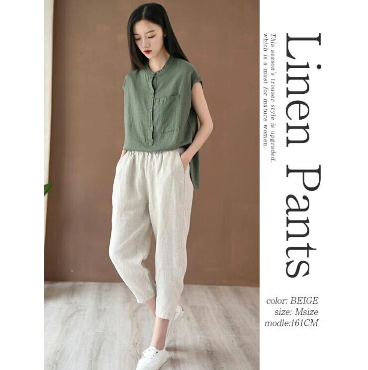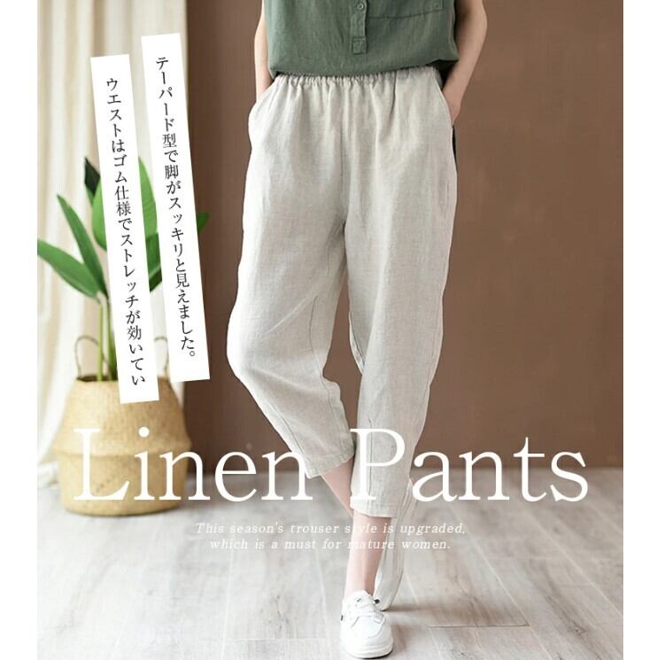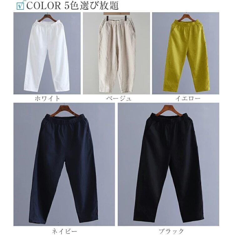 ■商品:テイパードパンツ リネンパンツ 9分丈 レディース 5色 S-L 綿麻パンツ ウエストゴム リラックスパンツ 韓国 ファッション コーデ おすすめ カジュアル きれいめ 大きいサイズ 人気 ゆったり 20代 30代 40代 50代
