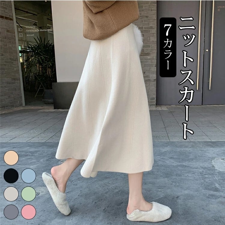 ■商品:ニットスカート ロングスカート レディース 7色 フリーサイズ ウエストゴム マキシスカート 無地 韓国 ファッション コーデ おすすめ カジュアル きれいめ 大きいサイズ 人気 ゆったり 20代 30代 40代 50代