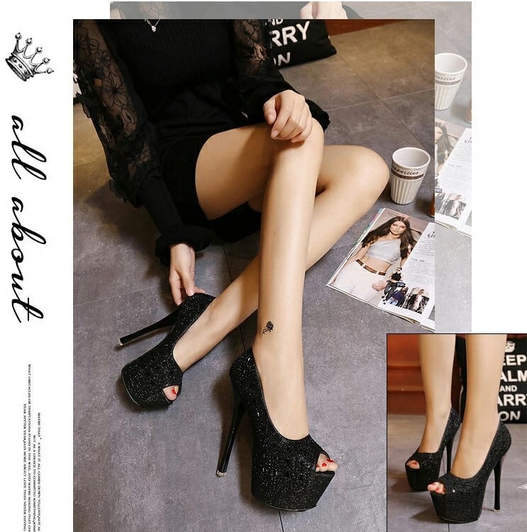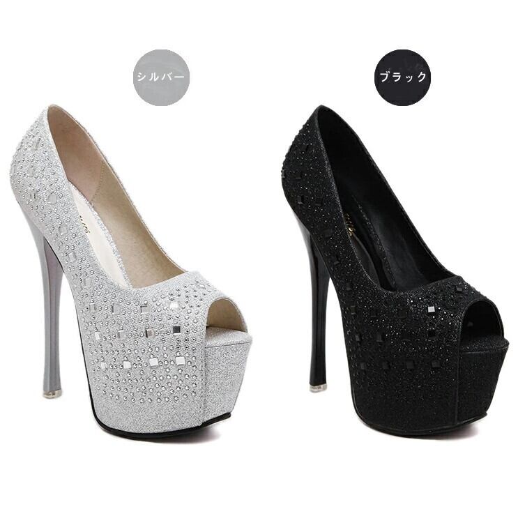 パンプス キラキラ ハイヒール ヒール高15.5㎝ レディース 2色 22-24.5㎝ キャバ嬢 結婚式 パーティー 25LT202