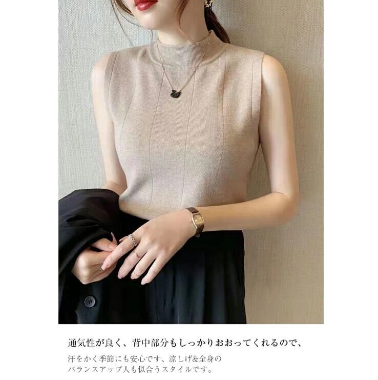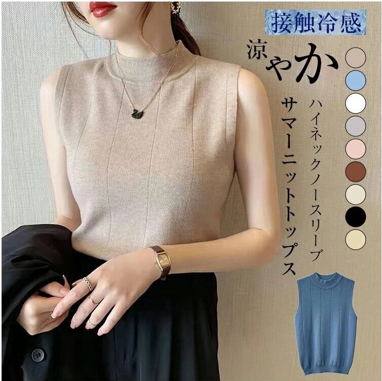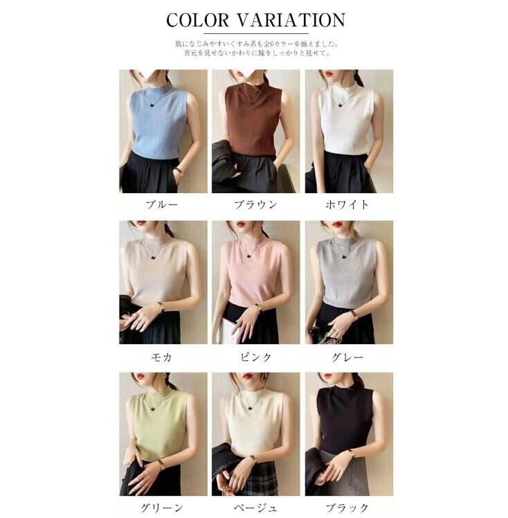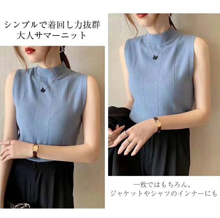 サマーニット ノースリーブ ハイネック レディース 9色 フリーサイズ 薄手 無地 きれいめ カジュアル 25LT203