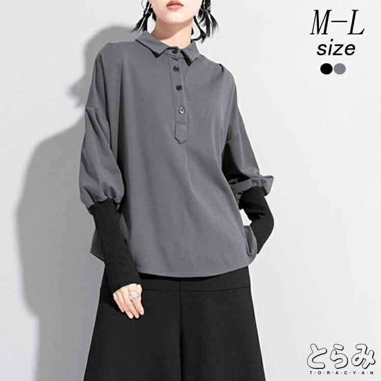 ■商品:ドルマン ポロシャツ トップス 長袖 レディース 2色 M-L カットソー ゆったり きれいめ カジュアル 韓国 ファッション コーデ おすすめ カジュアル きれいめ 大きいサイズ 人気 ゆったり 20代 30代 40代 50代