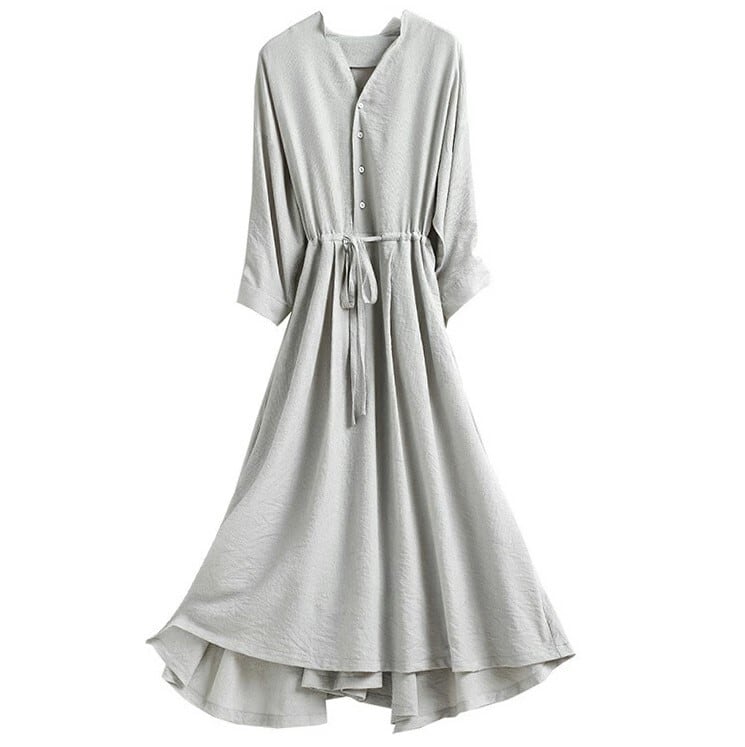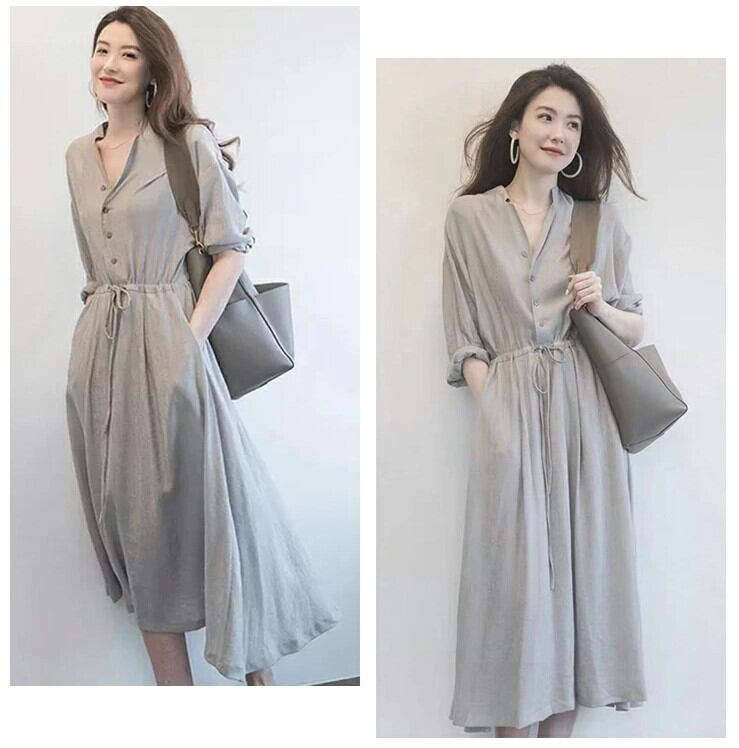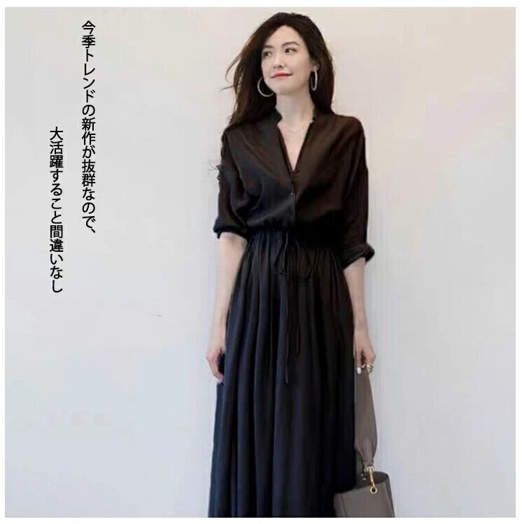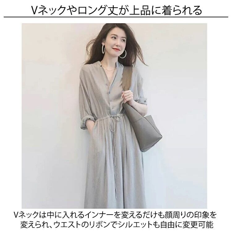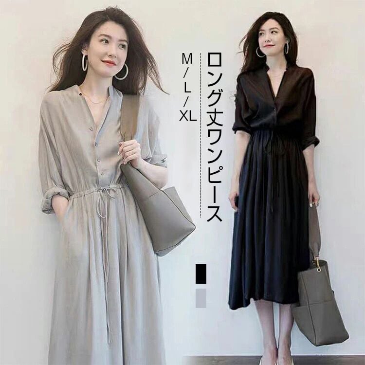 ■商品:ワンピース シャツワンピース Vネック レディース 2色 M-3L ロング丈 無地 Aライン きれいめ 大人 韓国 ファッション コーデ おすすめ カジュアル きれいめ 大きいサイズ 人気 ゆったり 20代 30代 40代 50代