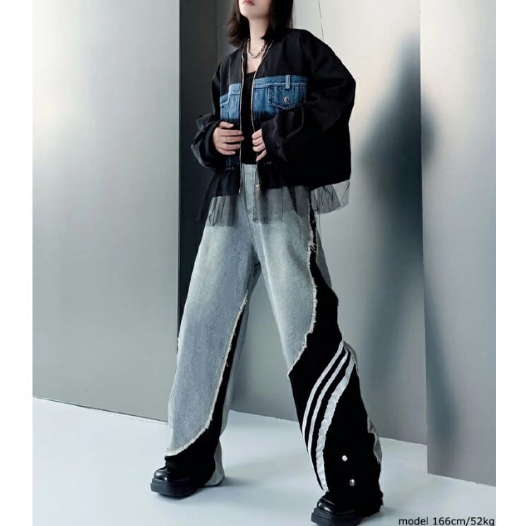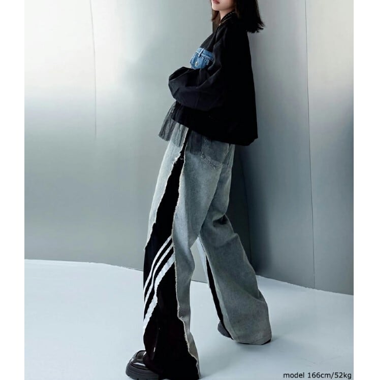 ★特徴:『トレンド感満載のデニムパンツが新登場!切り替えデザインのおしゃれなワイドデニムが、ルーズなシルエットを実現します!2色のバリエーションで、シーンに合わせたスタイルを楽しむことができます!』