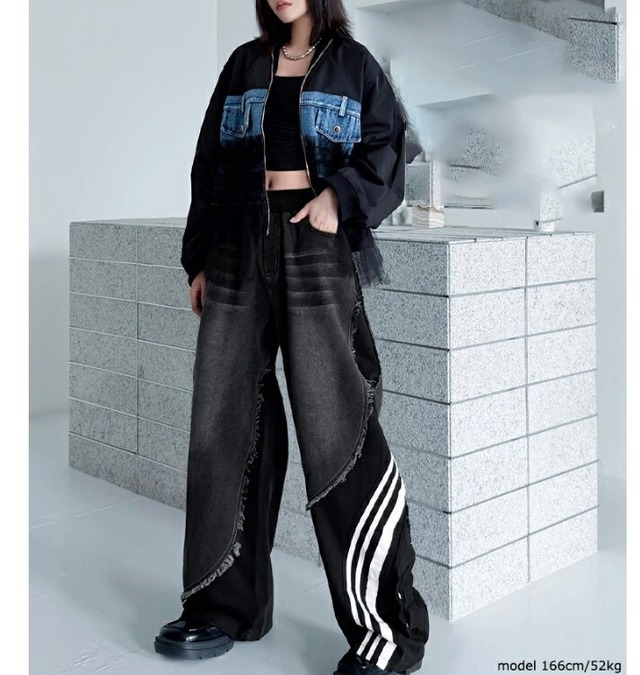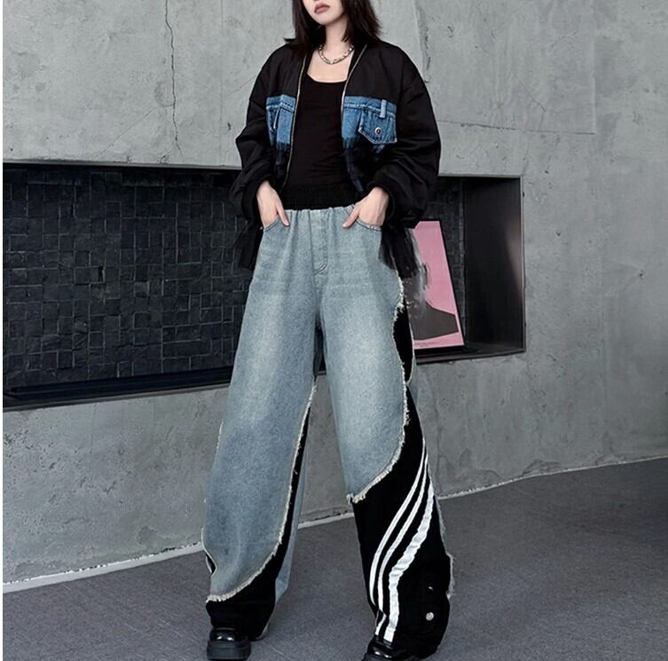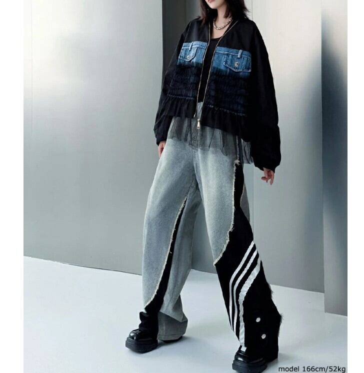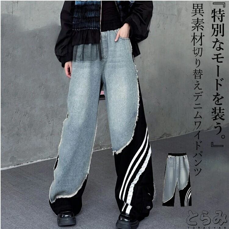 ■商品:デニムパンツ ワイドデニム 切り替え レディース 2色 フリーサイズ ゆったり ワイドパンツ カジュアル 韓国 ファッション コーデ おすすめ カジュアル きれいめ 大きいサイズ 人気 ゆったり 20代 30代 40代 50代