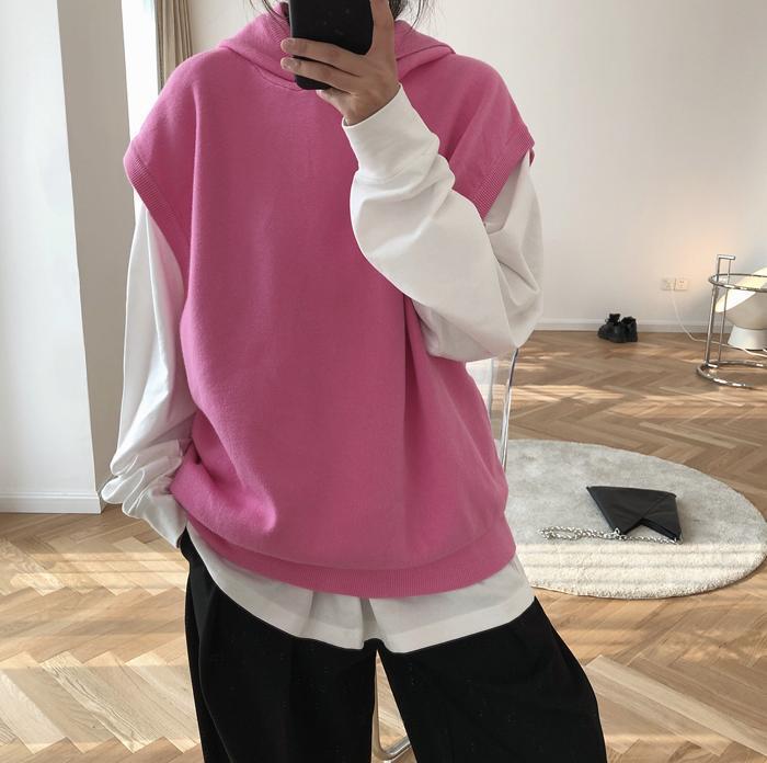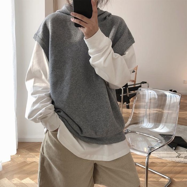 ■商品:ニットベスト フード付き レディース 3色 フリーサイズ ゆったり カジュアル プルオーバー 韓国 ファッション コーデ おすすめ カジュアル きれいめ 大きいサイズ 人気 ゆったり 20代 30代 40代 50代