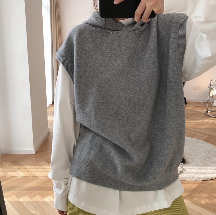 ★特徴:『トレンド感溢れるフード付きニットベストが新登場!3色展開で、季節に合わせたスタイルを楽しむことができます!』