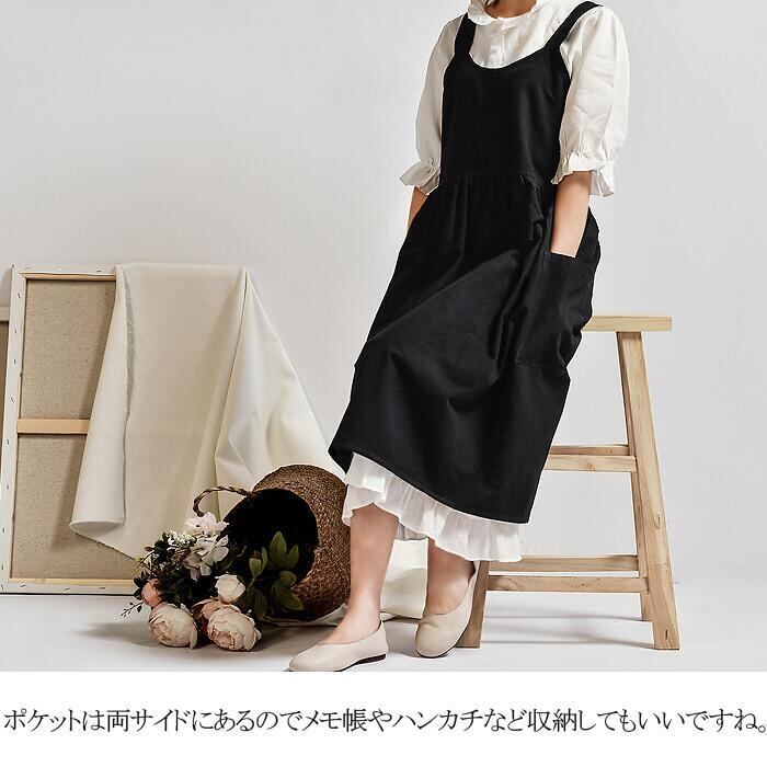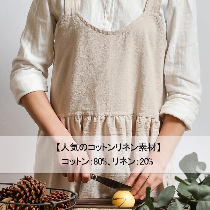 ■商品:エプロン 綿麻 ロング丈 レディース 3色 フリーサイズ 男女兼用 北欧風 おしゃれ カフェ 韓国 ファッション コーデ おすすめ カジュアル きれいめ 大きいサイズ 人気 ゆったり 20代 30代 40代 50代