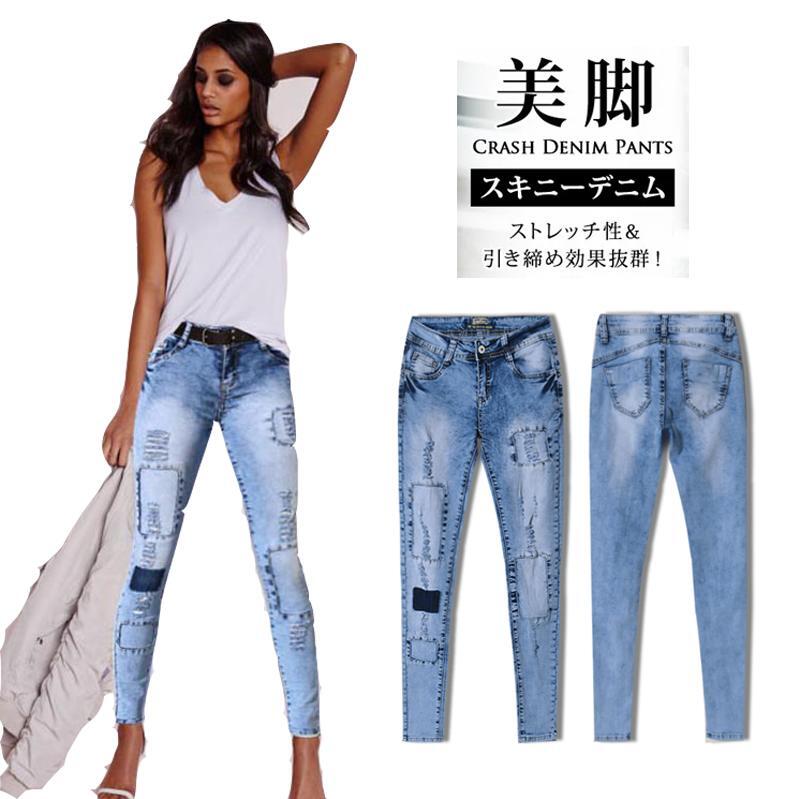 スキニーデニム ジーンズ レディース S-4L ダメージ加工 スキニーパンツ 美脚 カジュアル 25LT228