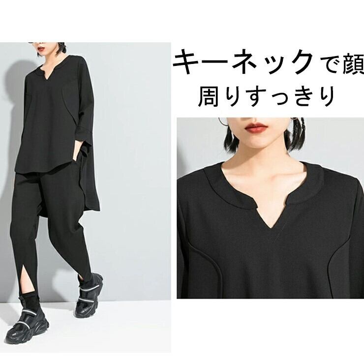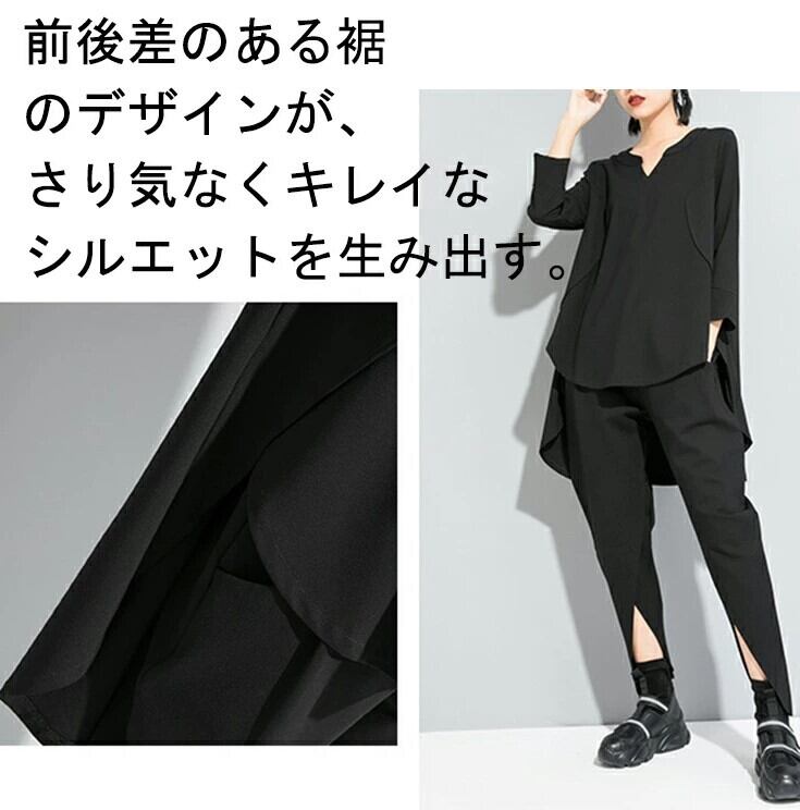 ■商品:tシャツ カットソー 七分袖 デザインtシャツ レディース M-L アシンメトリーt モード系 韓国 ファッション コーデ おすすめ カジュアル きれいめ 大きいサイズ 人気 ゆったり 20代 30代 40代 50代