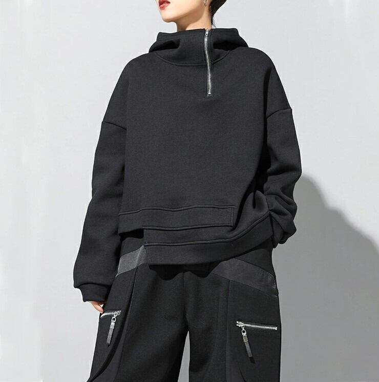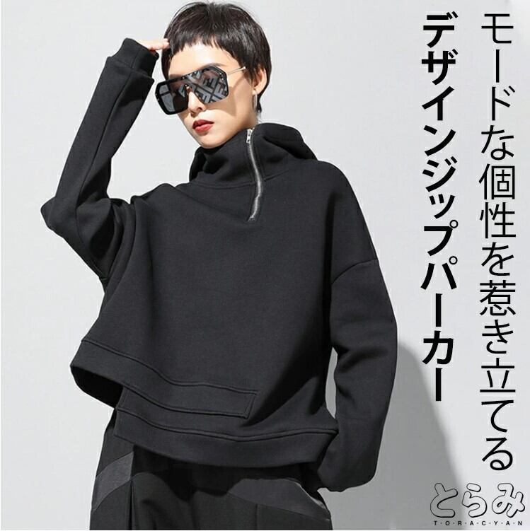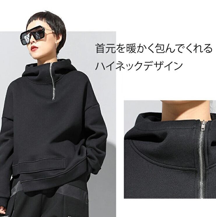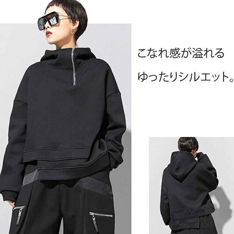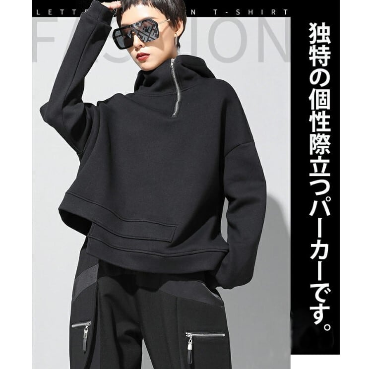 ■商品:パーカー アシンメトリー プルオーバー レディース M-3L 裏起毛あり/なし モード系 韓国 ファッション コーデ おすすめ カジュアル きれいめ 大きいサイズ 人気 ゆったり 20代 30代 40代 50代