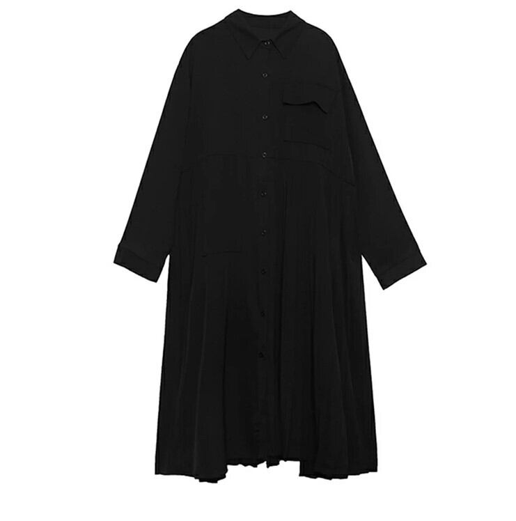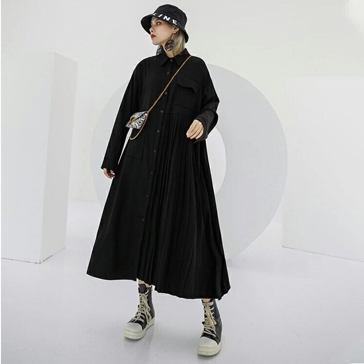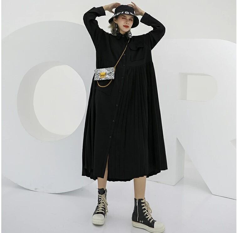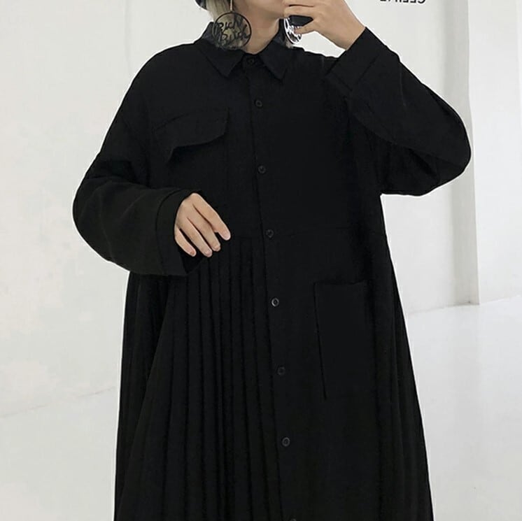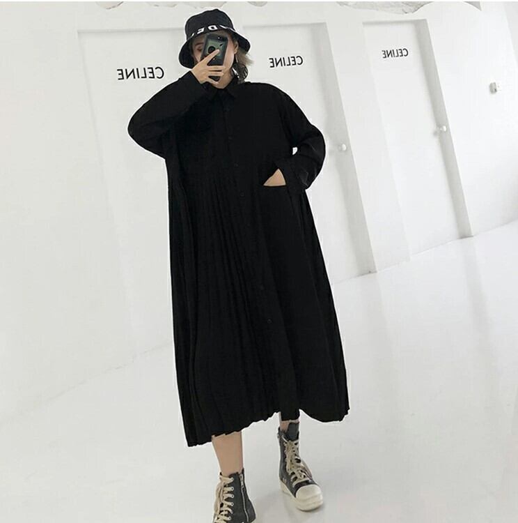 ■商品:シャツワンピース プリーツワンピース レディース フリーサイズ 無地 ゆったり マキシ丈 アシンメトリー 韓国 ファッション コーデ おすすめ カジュアル きれいめ 大きいサイズ 人気 ゆったり 20代 30代 40代 50代