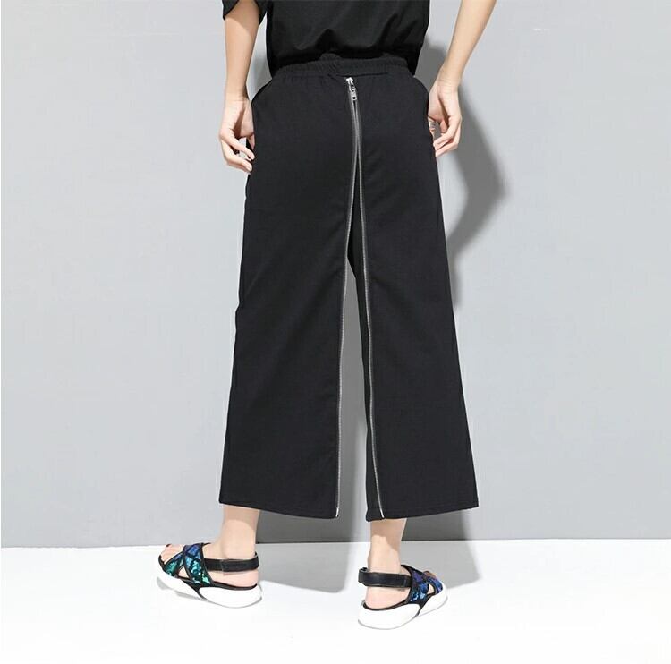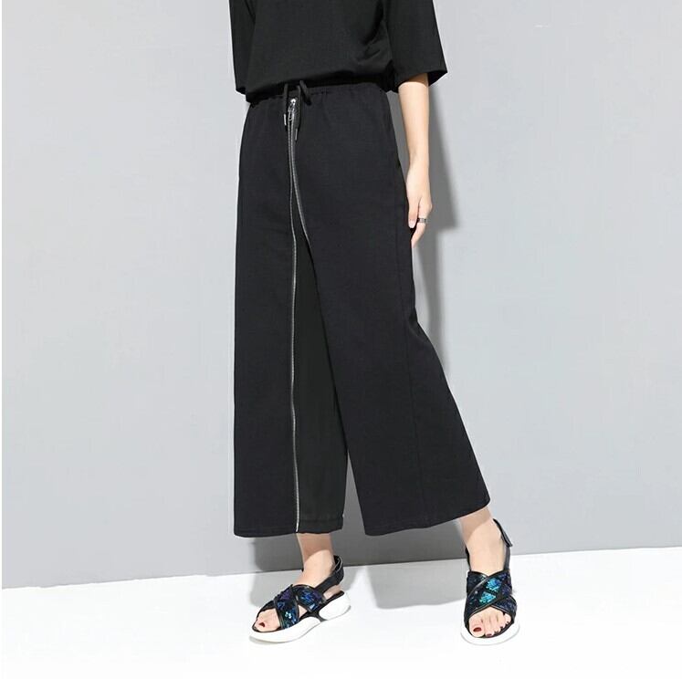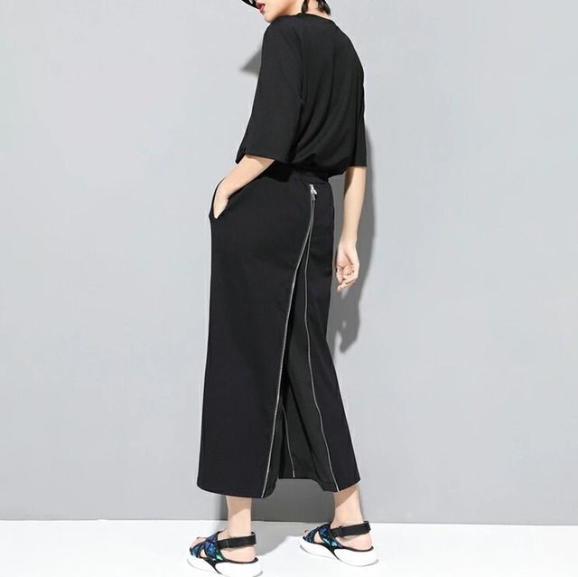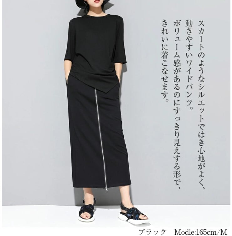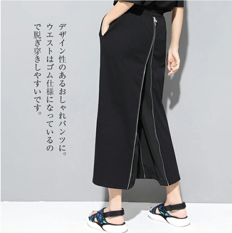 ワイドパンツ 2WAY ロングスカート レディース M-2L 無地 九部丈 モード系 ファスナーデザイン 25LT236