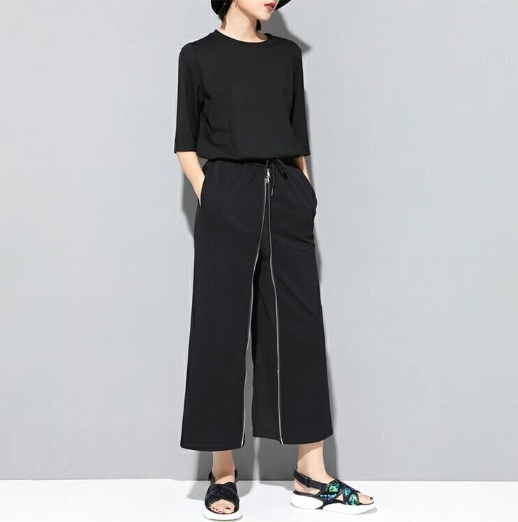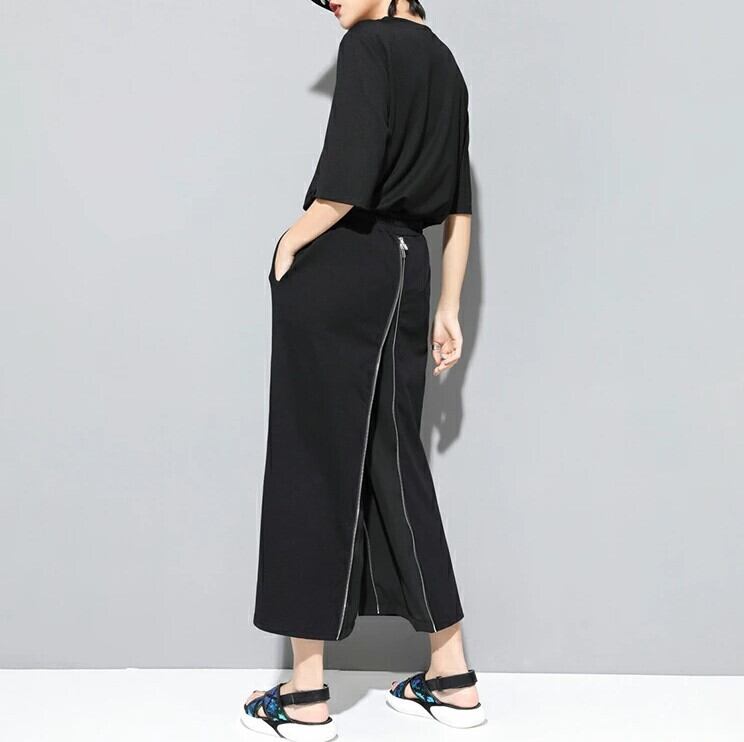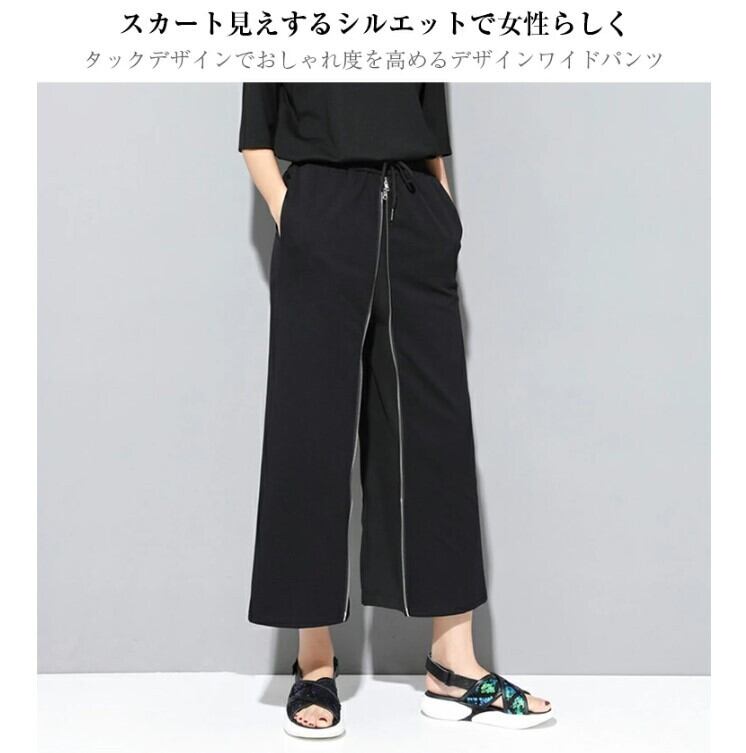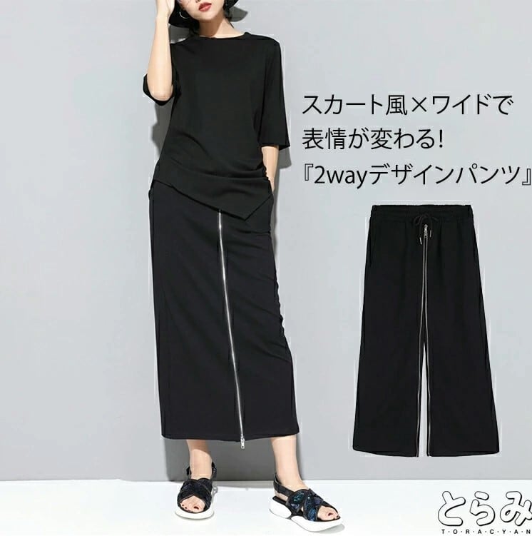 ■商品:ワイドパンツ 2WAY ロングスカート レディース M-2L 無地 九部丈 モード系 ファスナーデザイン 韓国 ファッション コーデ おすすめ カジュアル きれいめ 大きいサイズ 人気 ゆったり 20代 30代 40代 50代