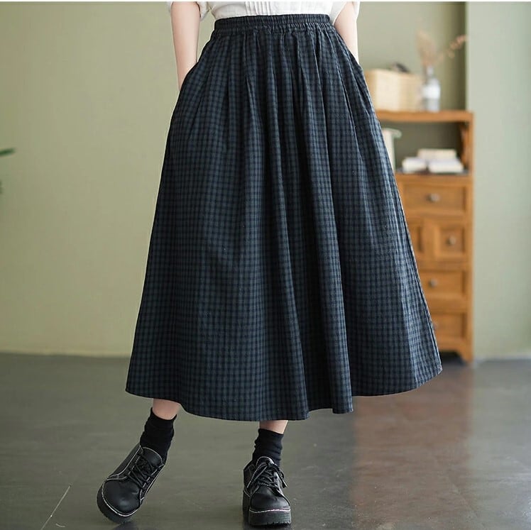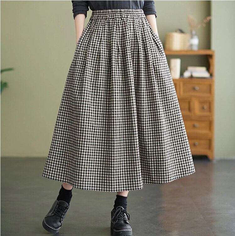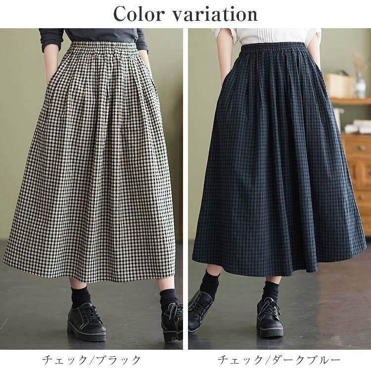 ■商品:ロングスカート フレアスカート チェック柄 レディース 2色 L-2L ギンガムチェック ウエストゴム カジュアル 韓国 ファッション コーデ おすすめ カジュアル きれいめ 大きいサイズ 人気 ゆったり 20代 30代 40代 50代