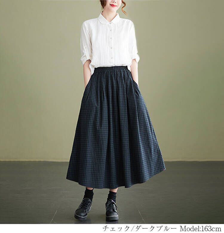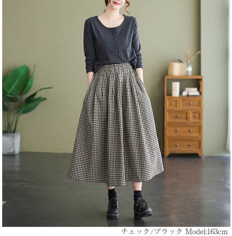 ロングスカート フレアスカート チェック柄 レディース 2色 L-2L ギンガムチェック ウエストゴム カジュアル 25LT237