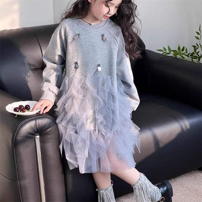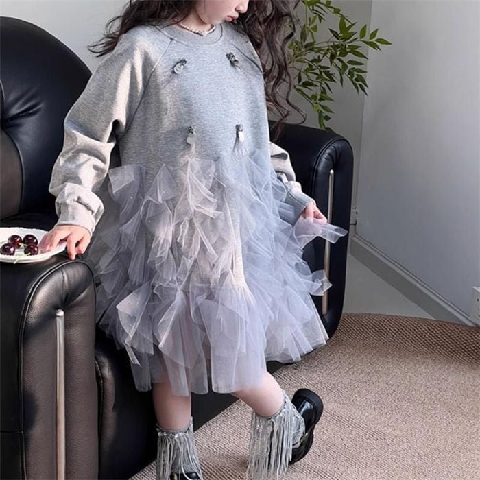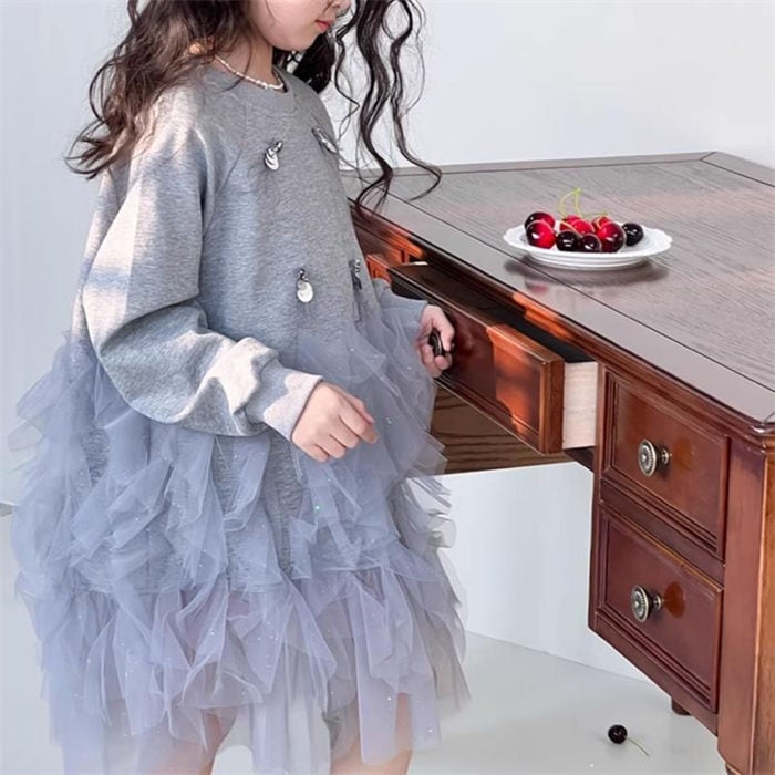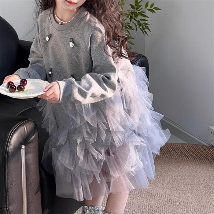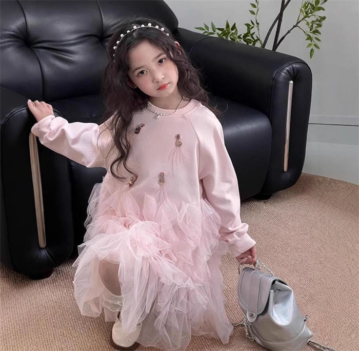 ★特徴:『新しく登場したレース切り替えロングワンピースは、女の子の魅力を引き立てる華やかさが特徴です!重ね着スタイルにもぴったりで、可愛さを最大限に演出します。』