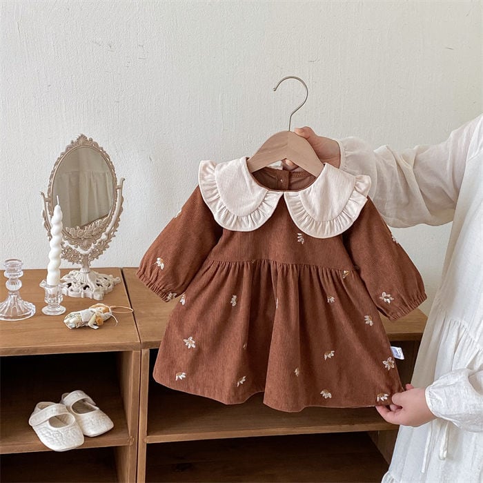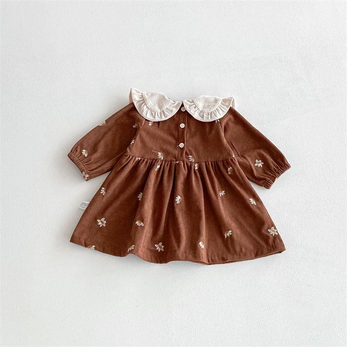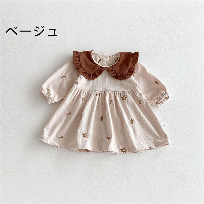 ベビー服 ワンピース 女の子 子供服 2色 73-100㎝ 刺繍 花柄 春秋 フォーマル かわいい 25LT248