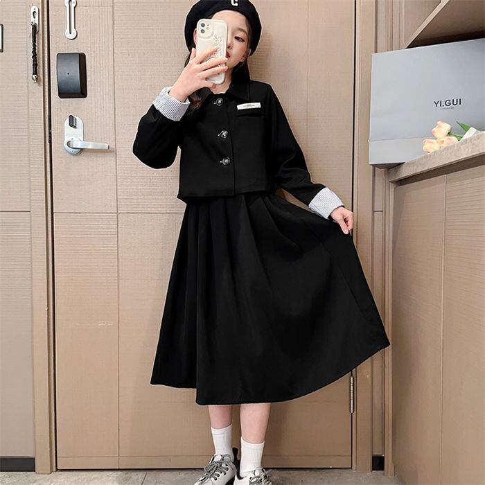 セットアップ 上下セット 女の子 子供服 黒 120-170㎝ フォーマル スーツ 制服 小学生 中学生 発表会 25LT253