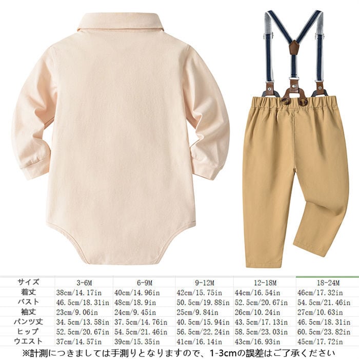 『こちらのフォーマルスーツは、3Mから24Mまでのサイズ展開があり、成長に合わせて長くご愛用いただけます。』どんなシーンでもおしゃれを楽しむことができ、お出かけや特別な行事で大活躍すること間違いなしです。大切な瞬間を彩る素敵な一着として、ぜひご検討ください!