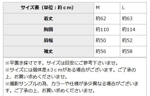 サイズ表の実寸法は商品によって1-3cm程度の誤差がある場合がございます。