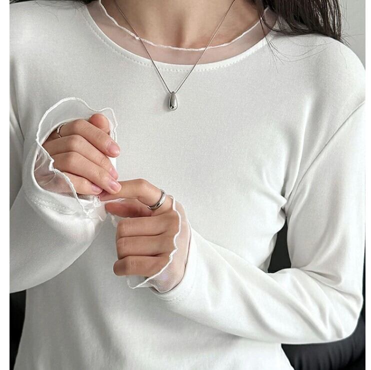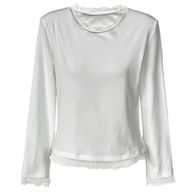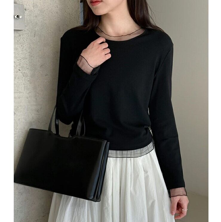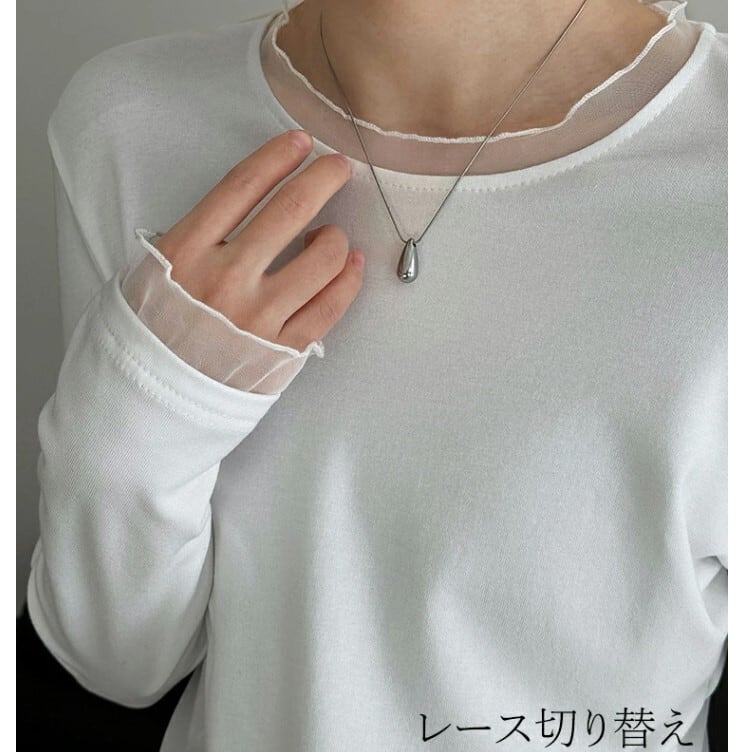■商品:カットソー レース切り替え 長袖 レディース 2色 M-L フリル 重ね着 インナー オフィス カジュアル 韓国 ファッション コーデ おすすめ カジュアル きれいめ 大きいサイズ 人気 ゆったり 20代 30代 40代 50代