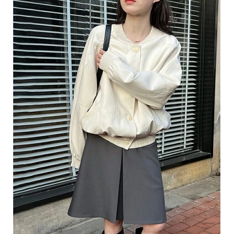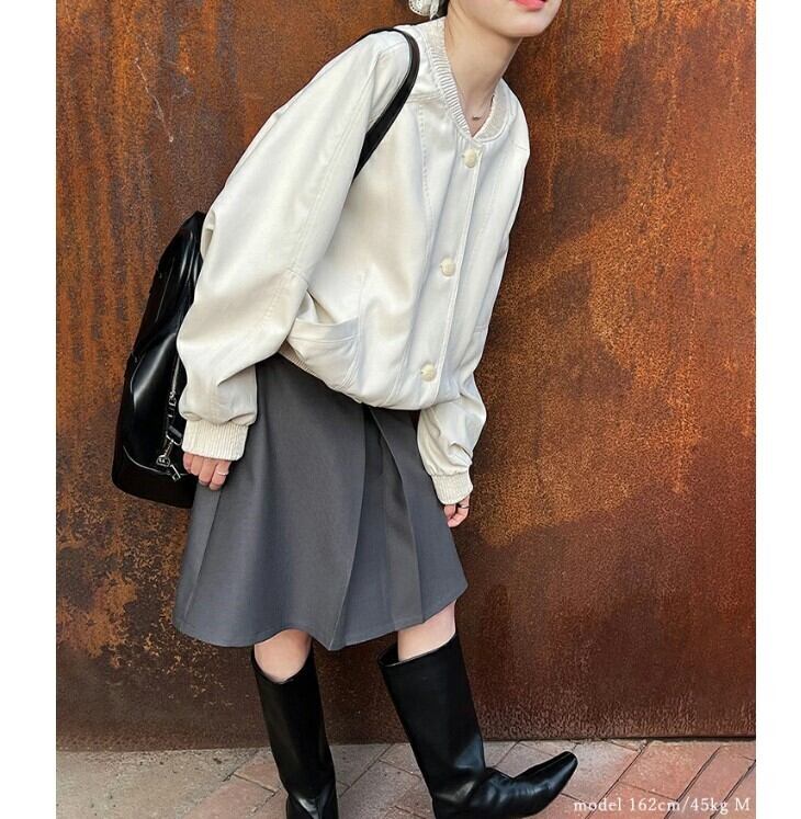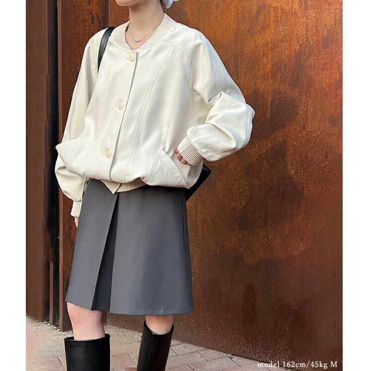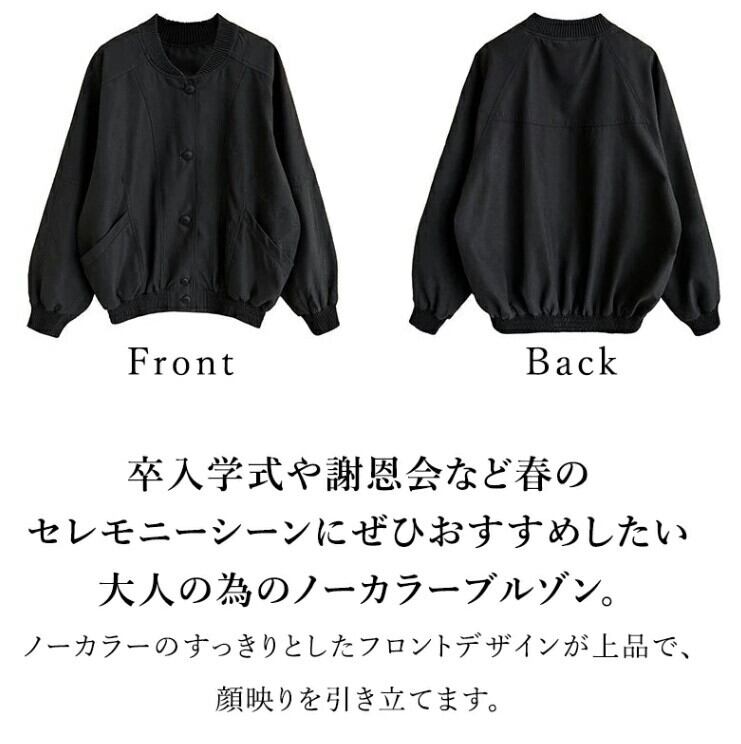 ブルゾン ノーカラー コクーンブルゾン レディース 2色 M-L ジャケット アウター カジュアル 26LT06