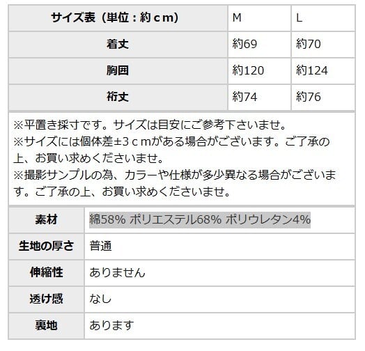 ★素材:綿58% ポリエステル68% ポリウレタン4%、その他