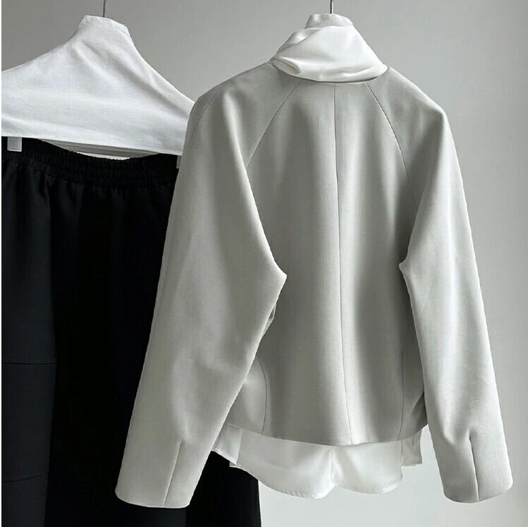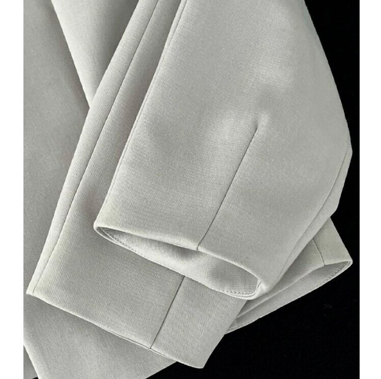 『こちらのジャケットは、無地のシンプルさがありながら、さまざまなコーディネートに合わせやすいのが特徴です。』軽やかな着用感で、春秋のアウターとしても幅広く活躍します。この機会に、ぜひあなたのワードローブに取り入れてみてはいかがでしょうか!