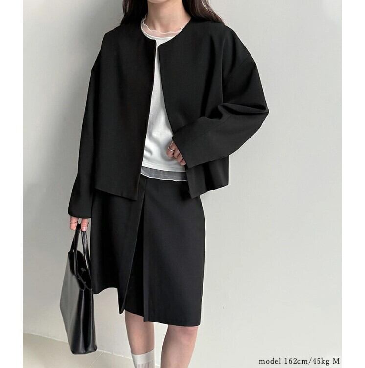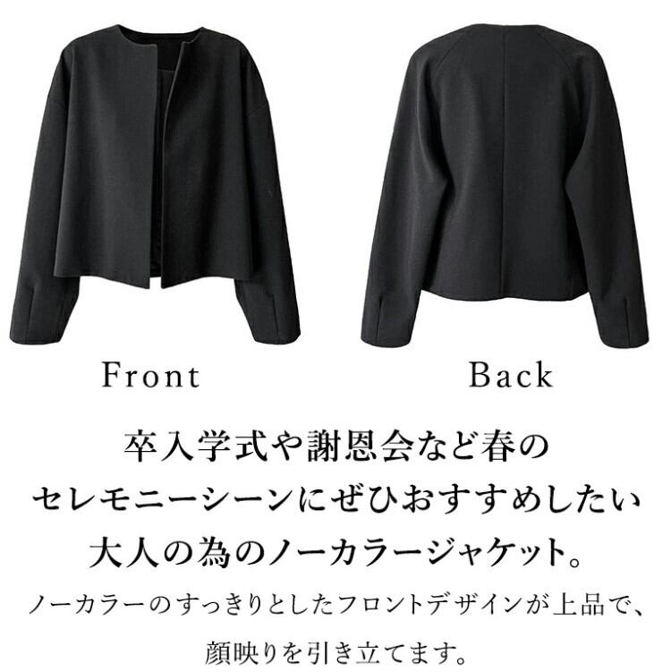 ブルゾン ノーカラージャケット レディース 2色 M-L 無地 ジャケット アウター オフィス きれいめ 26LT07
