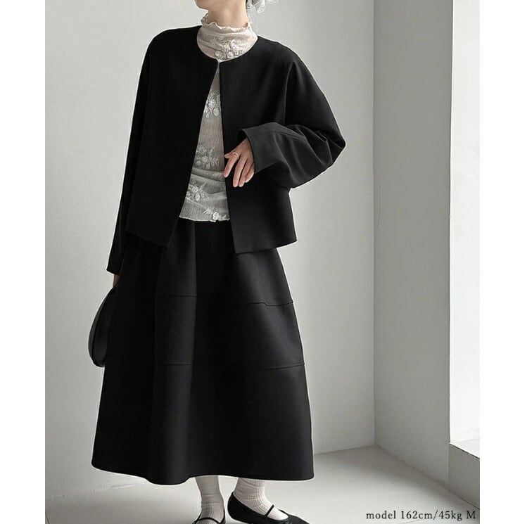 ★特徴:『新たに登場したブルゾン ノーカラージャケットは、シンプルでありながらも洗練されたデザインが魅力的な一着です!オフィススタイルはもちろん、カジュアルなお出かけにも最適なアイテムです。』M-Lサイズ展開で、リラックスした着心地が楽しめるデザインとなっています。