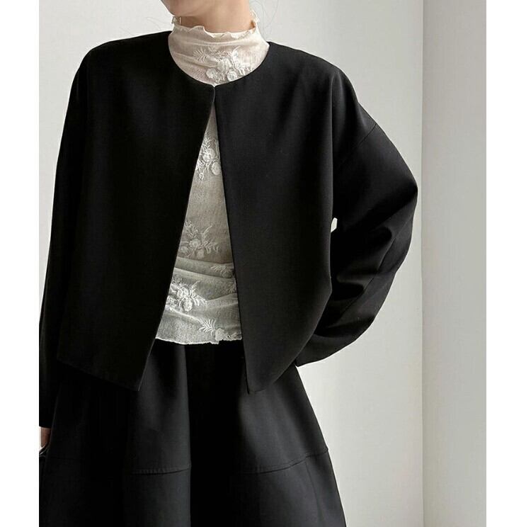 ■商品:ブルゾン ノーカラージャケット レディース 2色 M-L 無地 ジャケット アウター オフィス きれいめ 韓国 ファッション コーデ おすすめ カジュアル きれいめ 大きいサイズ 人気 ゆったり 20代 30代 40代 50代