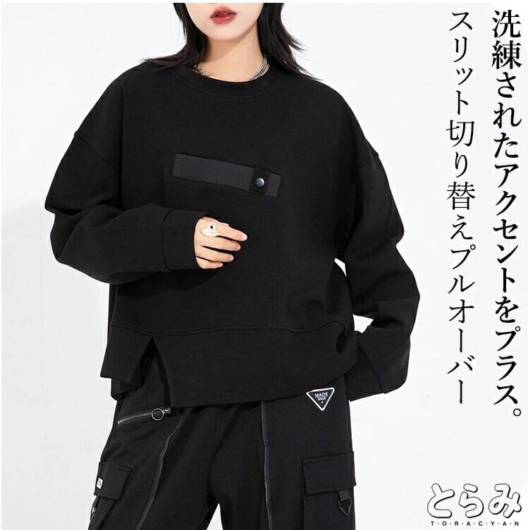 スウェット プルオーバー スリット レディース 2色 フリーサイズ 無地 モード系 個性的 26LT09