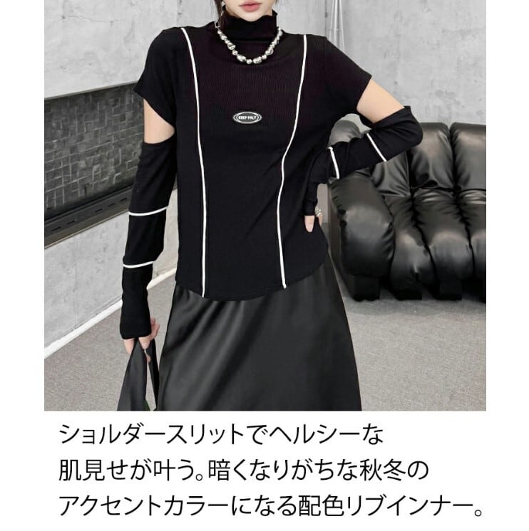 ■商品:ショルダースリットニット ニットトップス レディース M-L ハイネック モード系 個性的 韓国 ファッション コーデ おすすめ カジュアル きれいめ 大きいサイズ 人気 ゆったり 20代 30代 40代 50代