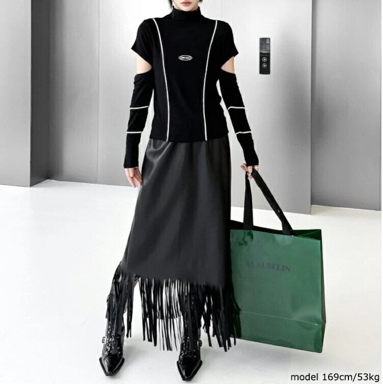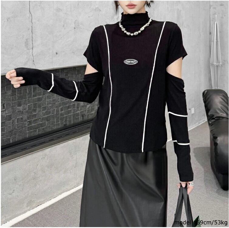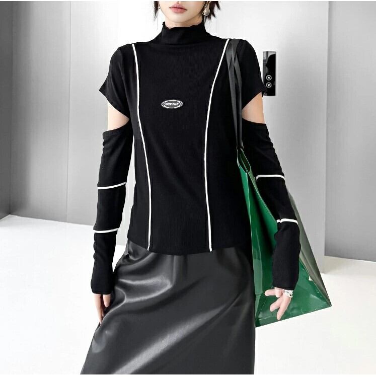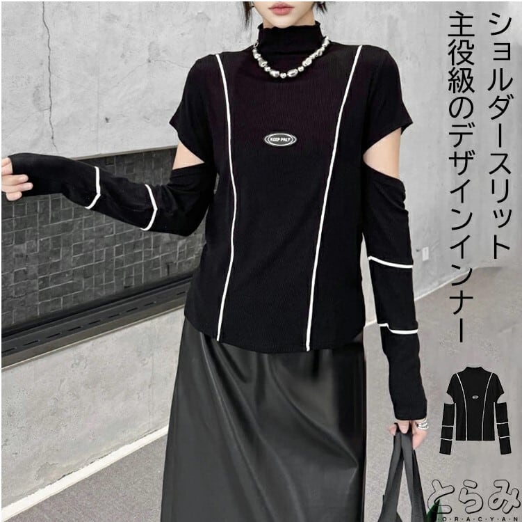 ショルダースリットニット ニットトップス レディース M-L ハイネック モード系 個性的 26LT13