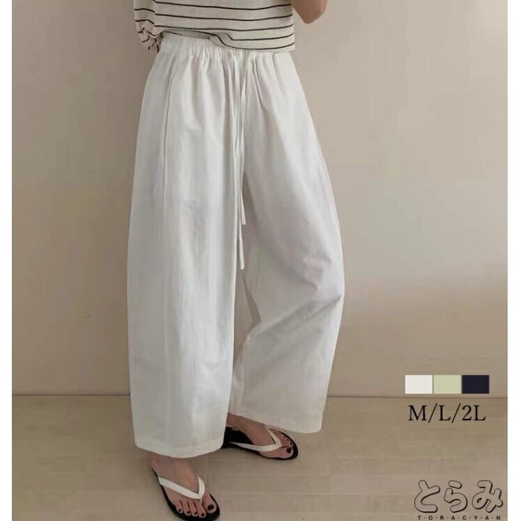 ■商品:イージーパンツ ワイドパンツ 9分丈 レディース 3色 M-2L バレルパンツ 綿100 ゆったり 韓国 ファッション コーデ おすすめ カジュアル きれいめ 大きいサイズ 人気 ゆったり 20代 30代 40代 50代