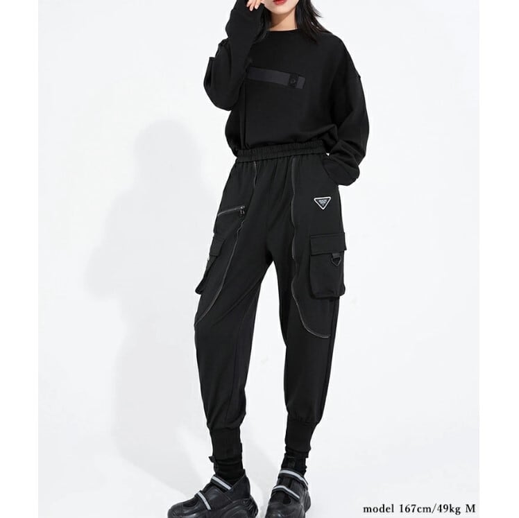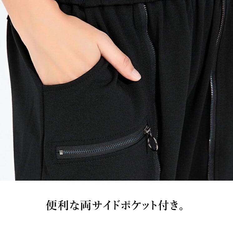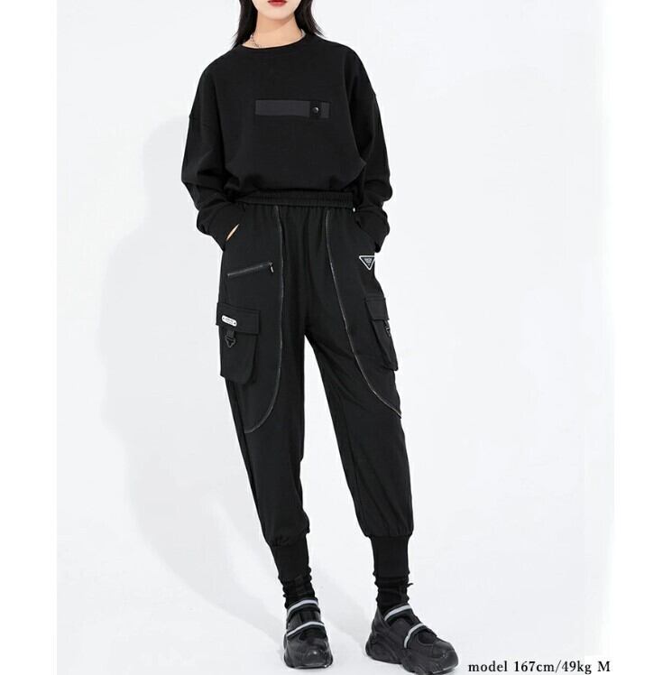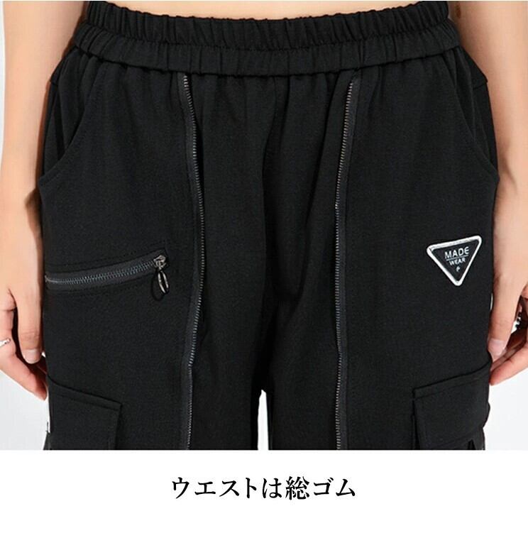 サルエルパンツ カーゴパンツ レディース 黒 M-2L ストレッチあり テイパードパンツ モード系 26LT23