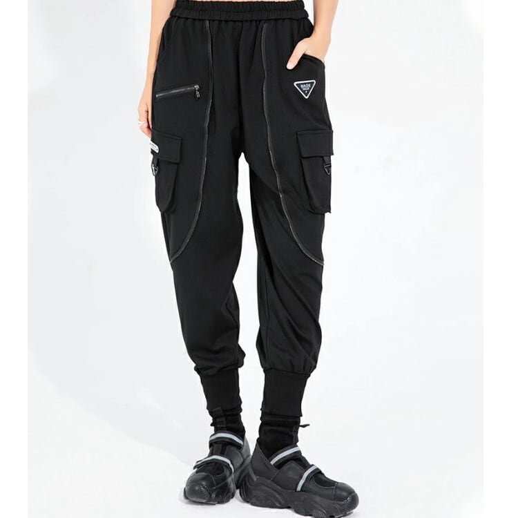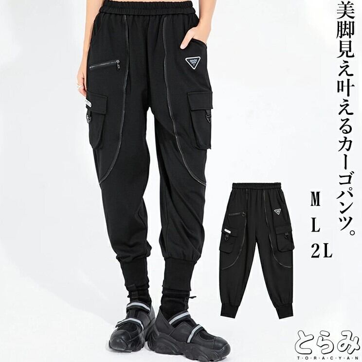 ■商品:サルエルパンツ カーゴパンツ レディース 黒 M-2L ストレッチあり テイパードパンツ モード系 韓国 ファッション コーデ おすすめ カジュアル きれいめ 大きいサイズ 人気 ゆったり 20代 30代 40代 50代