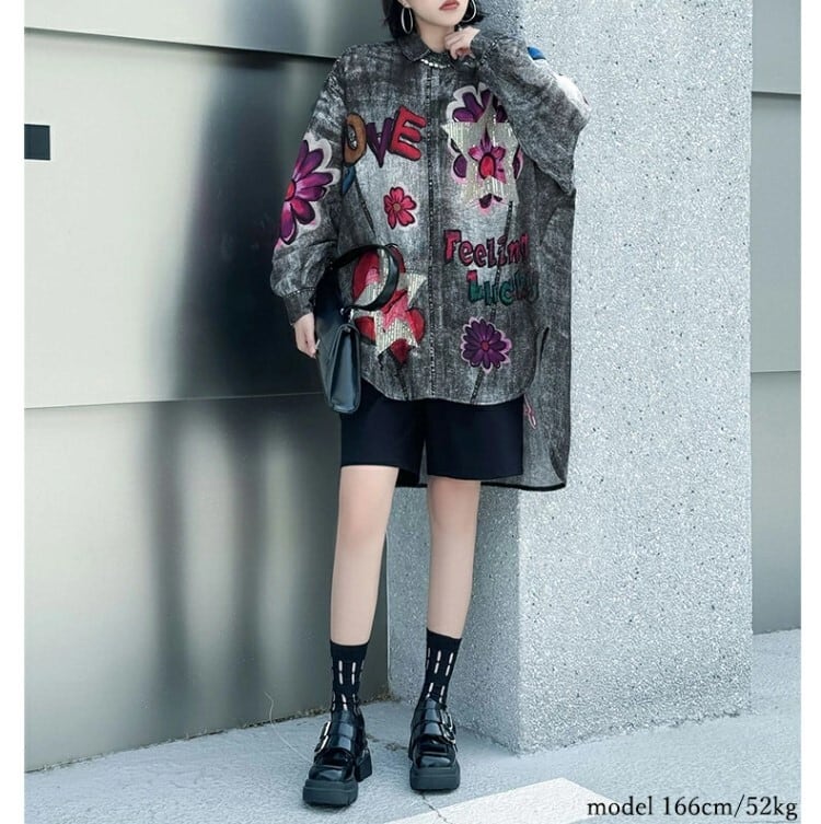 『こちらのデニムシャツは、デイリースタイルから特別なシーンまで、幅広く活躍するアイテムです。』個性的な花柄デザインは、あなたのアウトフィットに華やかさをプラスし、新たな魅力を引き立てます。この機会に、おしゃれなデニムスタイルを楽しんでみてはいかがでしょうか!