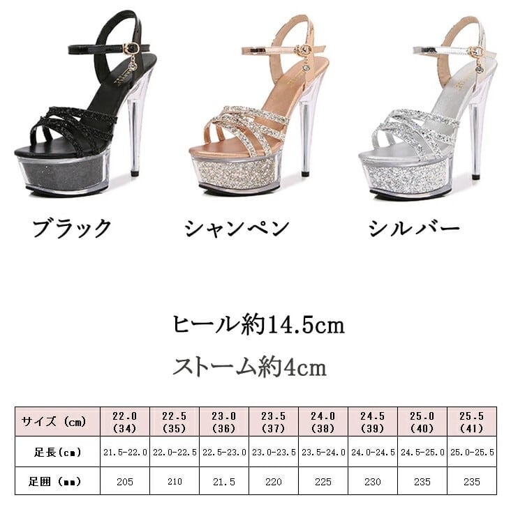 ★特徴:『このサンダルは、14.5㎝の高ヒールがエレガントさを引き立てるアイテムです!結婚式やパーティー、クラブなど特別なシーンで大活躍間違いなし。全3色のカラーバリエーションにより、あなたのスタイルにぴったりの一足が見つかります。22-25.5㎝のサイズ展開で、さまざまな足型にフィットし、快適な履き心地を実現しました。』
